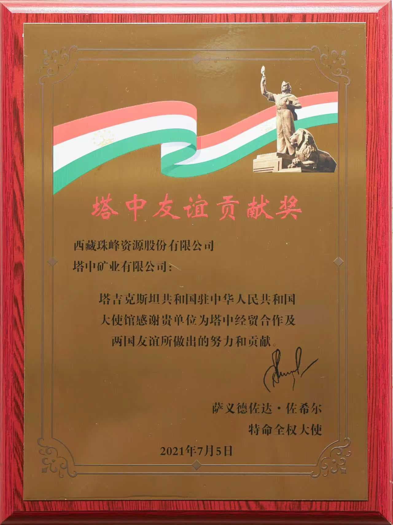 塔中友誼特別貢獻(xiàn)獎(jiǎng)