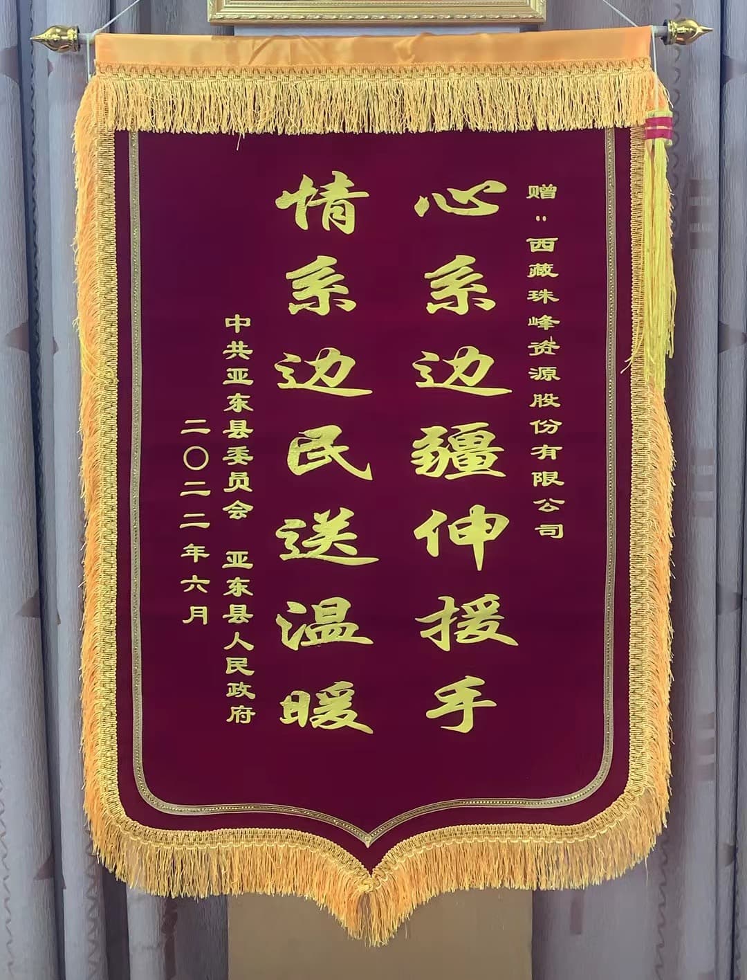 西藏亞東縣贈(zèng)送錦旗