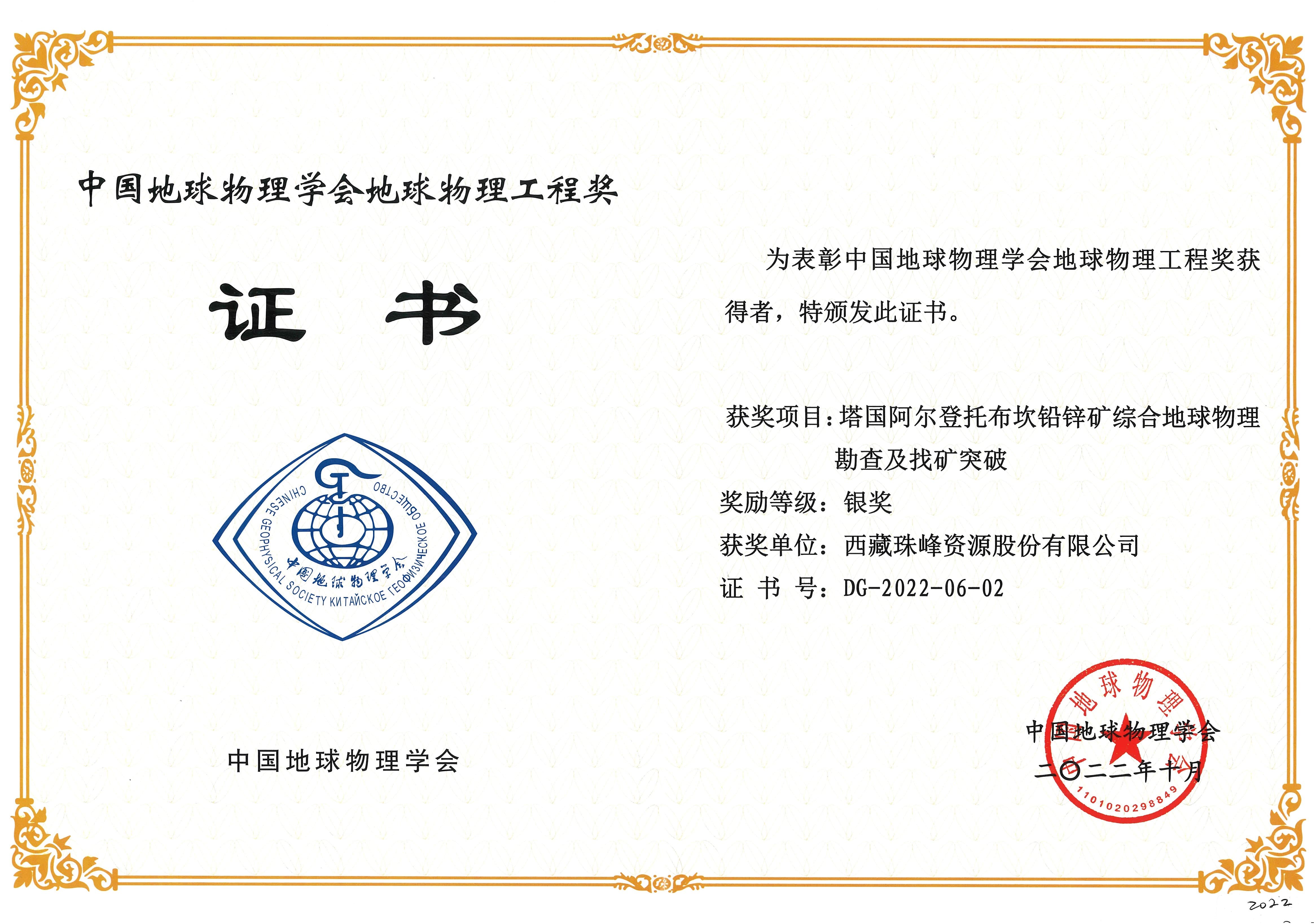 地球物理工程獎(jiǎng)銀獎(jiǎng)