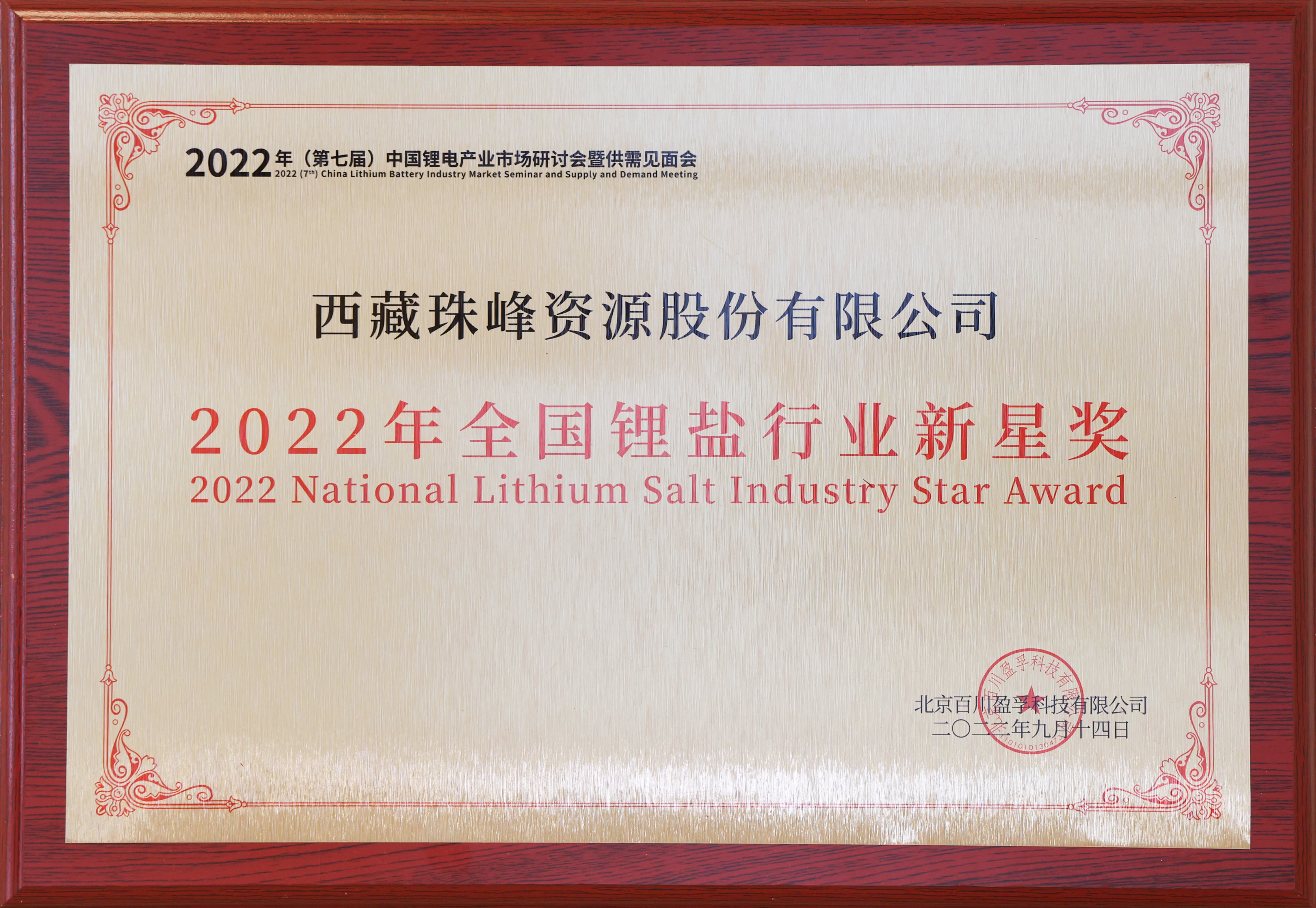 全國鋰鹽行業(yè)新星獎(jiǎng)